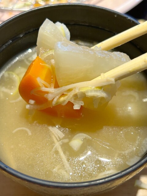 ご主人の奥様が上品な美しい方で、お味噌汁を2人分にしたかったので子供食器をお願いしたら娘達の為にわざわざもう一つお持ちいただき「サービスです。良かったらどうぞ。」と一人前具沢山のお味噌汁を下さいました!最後は主人が三人前飲んでました!(笑)