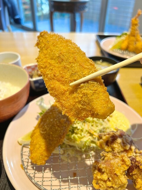 エビフライも大きな海老が3本に海老しんじょうが2つも!アジフライも大きい!確かにボリューム満点です!