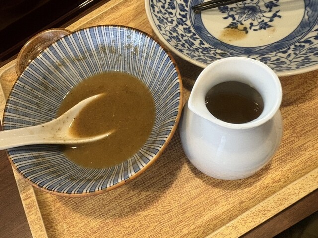 着席後、15後程でアツアツのつけ麺用の出汁がくる、