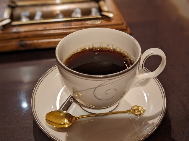 コースの献立ては箸休め用のフルーツ→コンソメスープ→ローストビーフ→サラダ→ステーキ→焼き飯→クレープシュゼットまで個室でいただいた後、別棟の建物でコーヒーをいただきます。