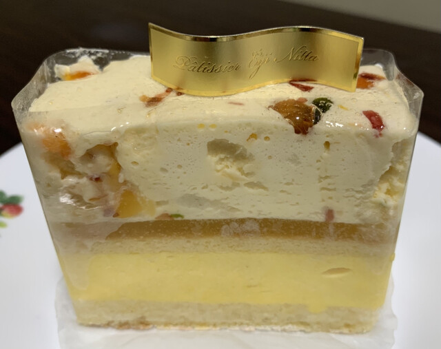 モンテリマール・エテは甘酸っぱいトロピカルなムースとパイナップルのジュレ、ナッツやドライフルーツ入りのハチミツ風味のムースが層になっていて、爽やかな味で美味でした(˶ᐢᗜᐢ˶)