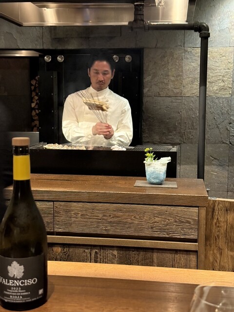 次にお食事、オープンキッチンということもありライブ感を楽しめる、サポートも含めて料理人は目視で3人、特に料理長の東シェフの佇まいはすごい、まだ食べてもいないのに必ず美味しいものを提供してくれるんじゃないかというような覇気を纏った方、かといって堅物そうな感じもなく人を緊張させない物腰、とにかく真摯に料理と向き合っている印象、そしてイケメン(笑)