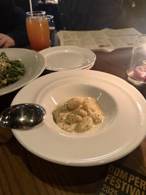 定番の燃えるケーキは頼みませんでしたが、あの演出と見栄えは以前からお気に入りです。初めて注文したニョッキは、チーズのコクがしっかりあってとても美味しかったです。一方で、サラダは豆の風味が少し口に合いませんでした。チキンは可も不可もなく、まあ美味しいかなという印象で、少しCostcoのチキンに近い感じがしました。このほかに、リゾットとピザも注文しました。リゾットは歯ごたえがやや強く、もう少し柔らかい方が好みです。ピザは卵とベーコンの相性が最高で、とても美味しかったです。デザートの抹茶ティラミスは味は美味しいものの、少し値段が高めに感じました。全体的には満足度が高く、また利用したいと思います。