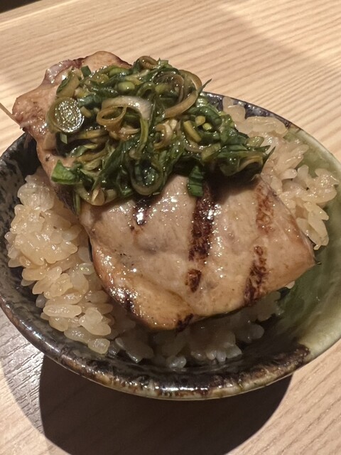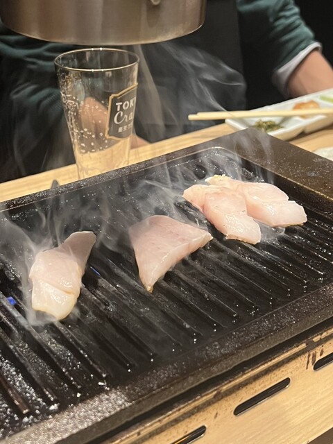 御造りは鮮度抜群で、たいのお刺身は歯ごたえが心地よく、まぐろほほ肉のユッケは濃厚な旨みとタレのバランスが絶妙。つぶ貝と天然とらふぐの葱塩焼きは、香ばしさと塩加減が絶妙で、噛むほどに旨みが広がります。