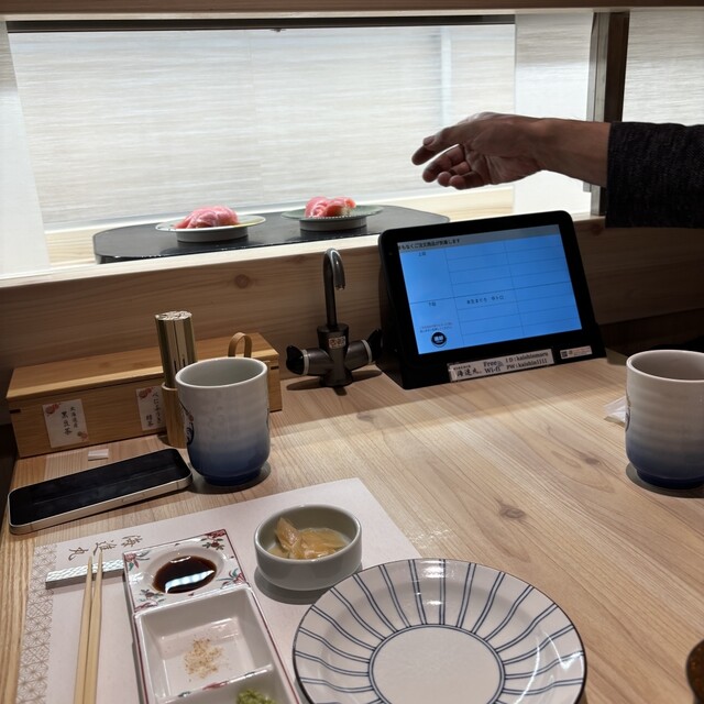 注文したら出来立てを流してくれる、しかも割と高級なネタで、というお店です。