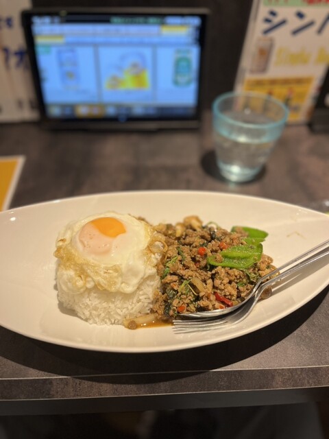 数分で提供されましたが、ビジュアルは完璧。見ただけで美味いの確定演出!一口食べるともう止まりませんでした。辛いのがそこまで得意ではない私ですが、いい安牌に辛く調理されており久しぶりのタイ料理を感じました!ひき肉や唐辛子をはじめピーマンやしめじなど具材も結構豊富に使われており、その一つ一つが喧嘩することなくうまみとなっていました。たまごはまあ普通でしたね。ここをもう少し改良してもっとマイルドな仕上げにしていただけると、より一層緩急のついた一品になっていだでしょう。