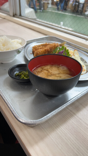 アジフライ2枚 付け合わせ野菜 ご飯 お味噌汁