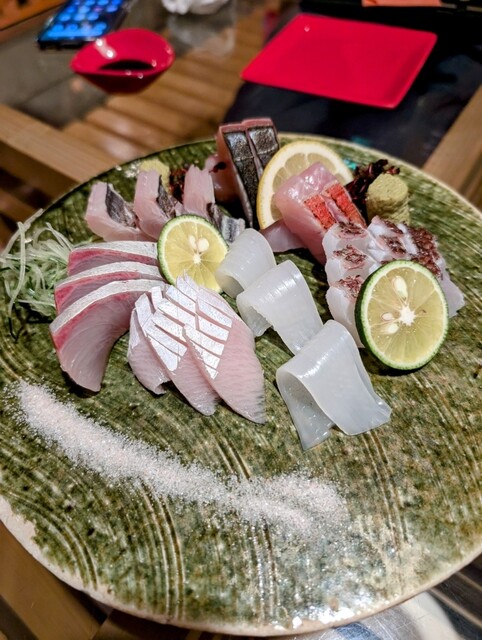 6人で予約した席は、木材が巧みに使われており、上部が開放されていて心地よい空間でした。店内は装飾、照明に異空間な雰囲気が良かったです。お食事も時期の旬な食材を使って提供されるコースは素晴らしかったです。またスタッフの方が一品一品に説明をしてくれて、より料理の味を高めてくれました。飲み物もよなよなビールを2杯、極聖の冷酒、スパークリングワインから白ワイン、赤ワイン、ハイボール、カクテル等々いっぱいいただきました。