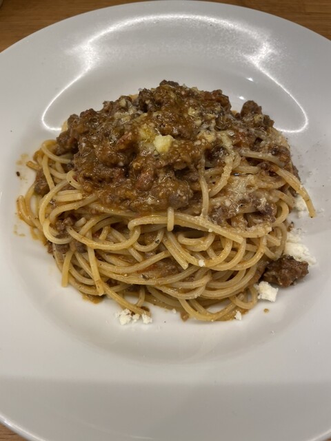 ボロネーゼのゴロゴロっとした挽肉とソースがショートパスタに絡まって美味しかっただす。