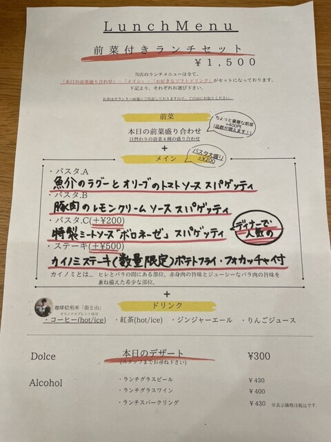 先ず本日おすすめの前菜盛り合わせとショートパスタのボロネーゼを注文。
