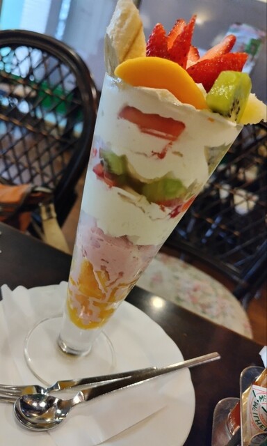 母はフルーツパフェ、旦那さんはデラックスパフェも注文。