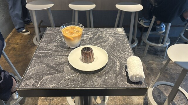 ブラックチェリーの甘すぎないソースが、むぎゅむぎゅのカヌレに入っていて最高でした。