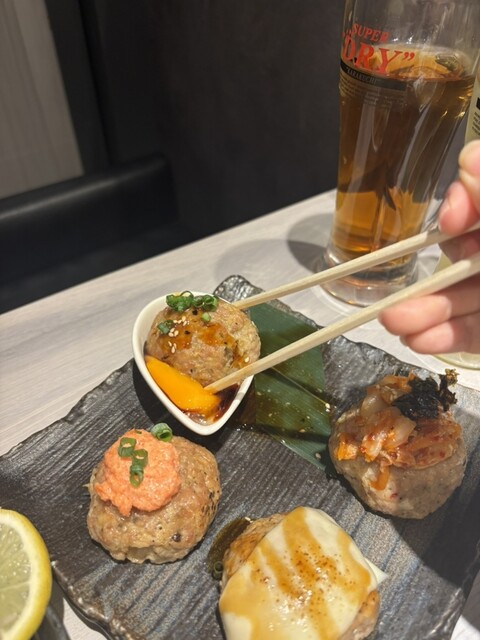 想像以上に大きくてビックリしました。拳弱くらい。いちばん美味しかったのは月見つくね!卵黄とタレにかけて食べるのが最高でした!!色んなつくねがあるので迷いました。