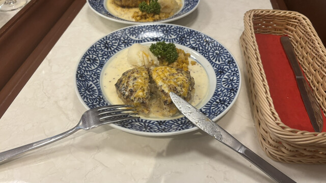 肉汁じゅわー、チーズとろーりで最高。4人前なのでハンバーグが2個でした。