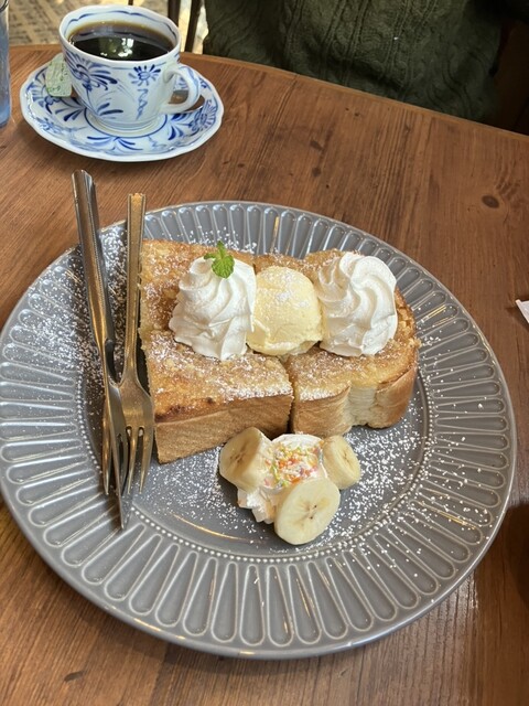 いつもつけられてた6枚切りのアーモンドトーストを食べることはありましたが分厚いアーモンドトーストを食べるのははじめて!