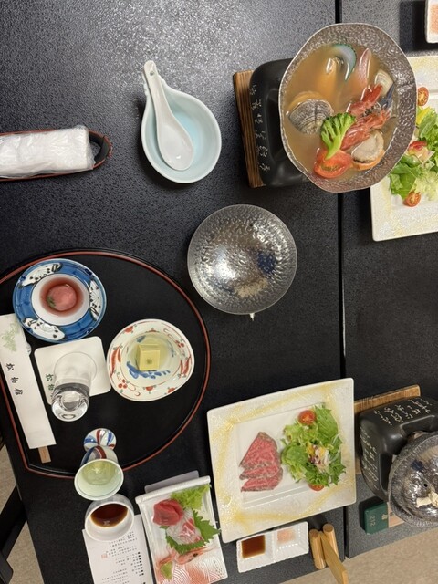 至福の時間です。素晴らしい料理と硫黄の香り漂う掛け流し温泉♨️ 江戸時代から続く老舗温泉宿。