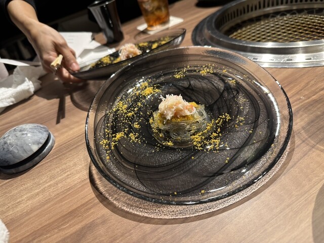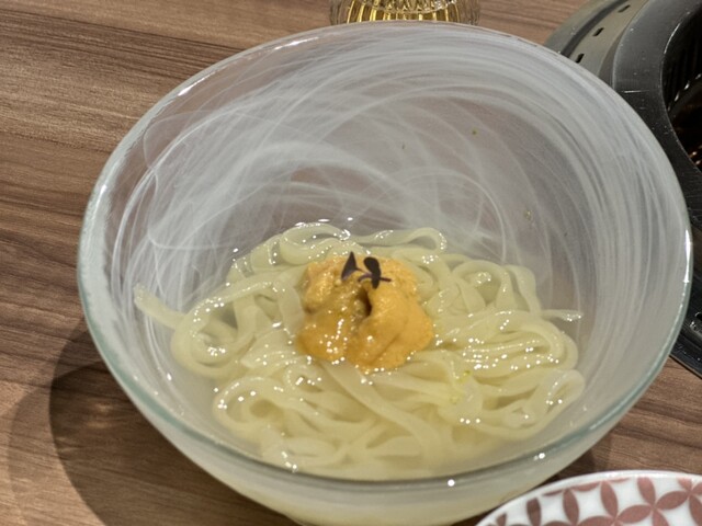 さらに雲丹冷麺で口直ししながら、極上ハラミやトリュフ香るシャトーブリアンへと続きます。特にサーロインのしあわせ焼きは卵黄とろろとの相性が絶妙で思わず笑顔に。土鍋で炊いた南魚沼産新之助ごはんもお肉とぴったりで大満足!