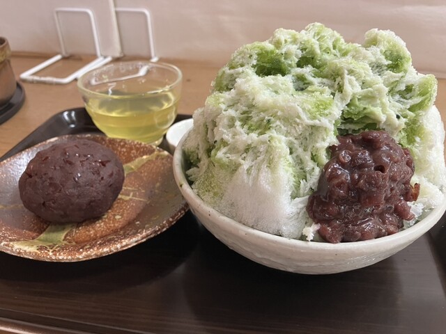 毎年必ず夏と冬に行くお店です。夏はかき氷、冬は栗ぜんざい.もう30年以上通っているお店です。今年も家族4人で行きました。定番の宇治ミルク金時はキメの細かい氷に濃い抹茶、甘いミルクと絶品の餡子の相性はいつも抜群です。これに定番のおはぎ.最高です。いつまでも通いたい名店の一つです。お茶も最高に美味しいです。