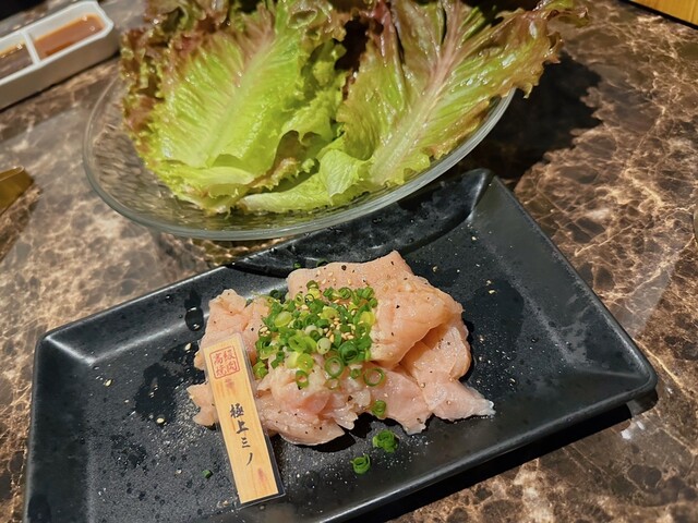 タレは三種類の真ん中のタレにわさびを入れて食べるとシンプルでお肉にも良く合い、個人的に好きです。