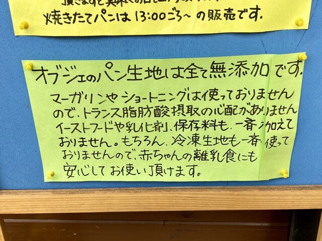 ・パン生地は全て無添加(イーストフード、乳化剤などと言った添加物は一切使用していない。使用小麦も外国産では無く、国産小麦に拘っていらっしゃる。素晴らしい。)