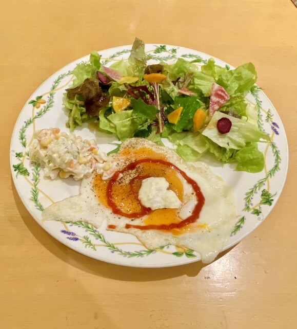 モーニングビュッフェBについているコールスローサラダとグリーンサラダ、そしてトロトロのフライドエッグが本当に美味しいんです…♡