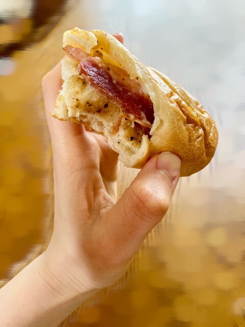 ねぎぱん♡イベリコ豚を使用した厚切りのベーコン!これが本当においしい〜! これも常連です(笑) マヨと照り焼き風に味付けされたネギとも相性が抜群♡おいしいんだよなぁ…