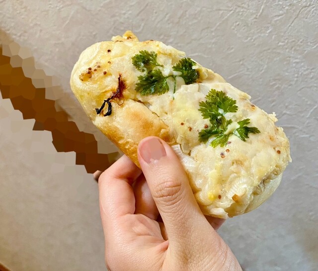 ツナポテト♡マヨネーズ、ツナ、マッシュされたジューシーなポテトが乗せられている惣菜パン!マヨネーズとポテトが合わさる事でポテトサラダの様な食感と風味が楽しめます♡おいしい♡