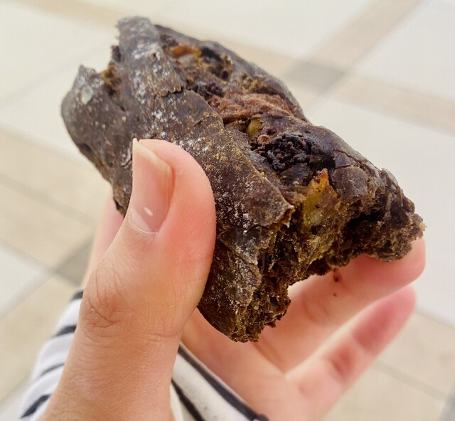 ガリガリッ!とするくらい歯ごたえがあり、固めのパンだったんですけど甘過ぎないチョコレートがGood♡ アクセントとしてオレンジピール?が入ってたのかな?それもよきでした!おいしい!