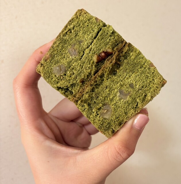 仄かに香る抹茶の香りの生地、コリコリと食感が楽しいアーモンドとくるみが良いアクセントになってくれてます!♡