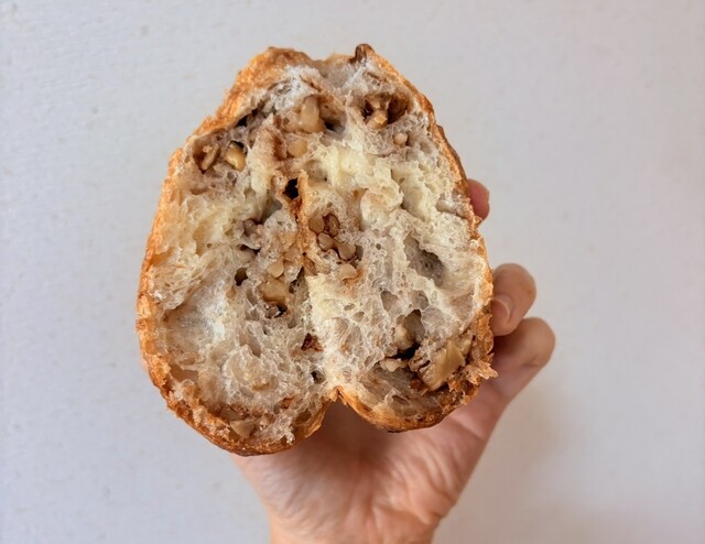 外側はパリッ!中はゴロゴロとくるみが入っており、バターの良い香りと風味が感じられます♡絶品なんですよ…くるみがあまり好きでない私ですが、このパンは別です。大好き