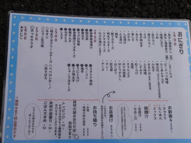2個以上のおにぎりと味噌汁頼むと100円引きに