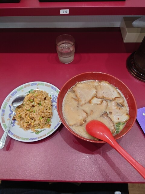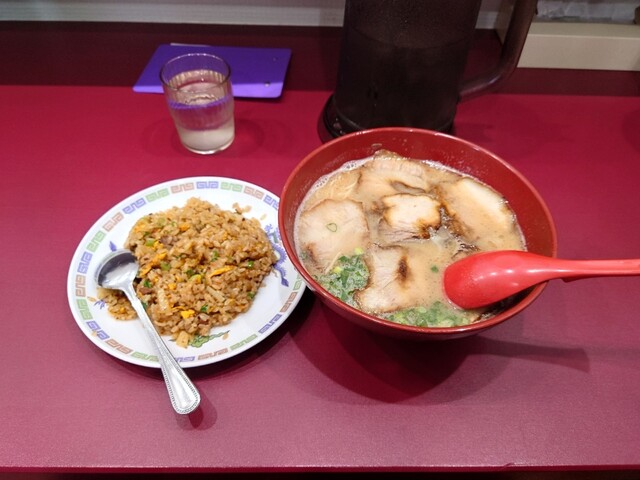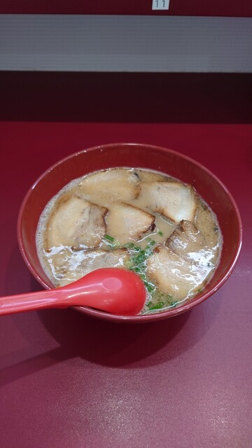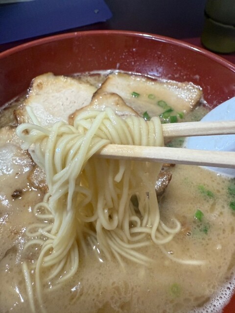 熱々の豚骨スープにストレート細麺、柔らか豚バラチャーシュー旨し‼️