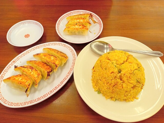 彼氏は悩みに悩んで安定の漆黒しょうゆに半チャーハンと餃子3つセット