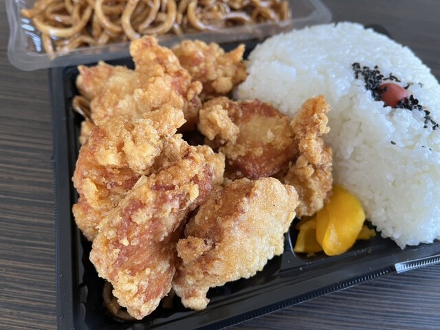 むねから弁当のごはんメガ盛り、敷き焼きそばメガ盛りを注文。