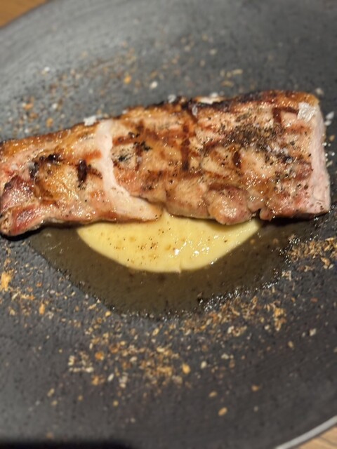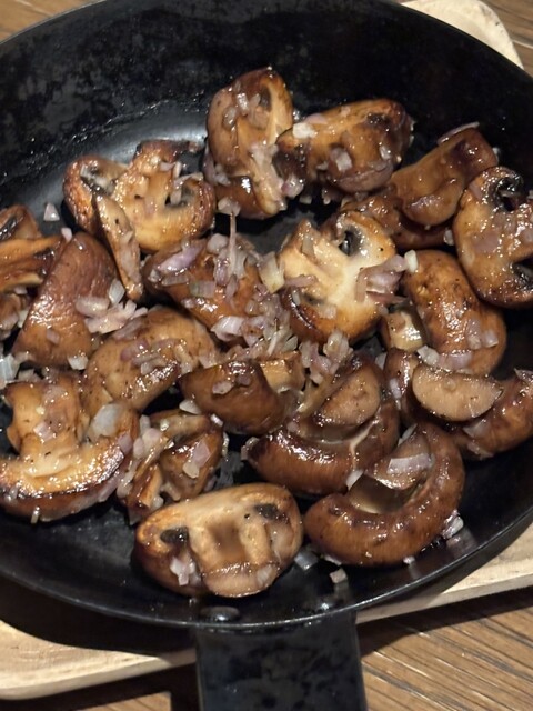 どれを取っても素敵な料理ですが、亀岡牛の赤ワイン煮込み・生本マグロのタルタル、特に美味しかったのは京都産もち豚ローストとマッシュルームのソテー これは旨くてお酒とも合いお代わりをしたほどでした