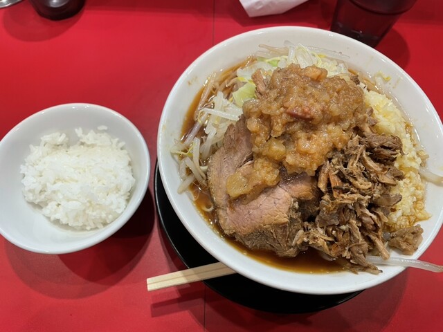 ほぐし豚トッピング、脂マシ、ニンニクマシ、ヤサイ普通で頂きました。