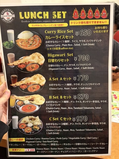 ランチはナン食べ放題。
