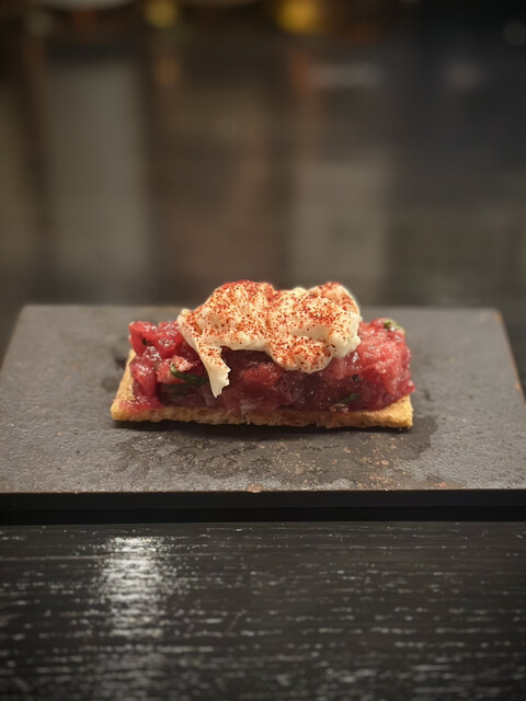生ハムとやま幸マグロのブルスケッタはマストでオーダー。