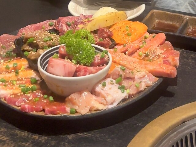 黒毛和牛カルビ、上タンなども食べ放題で、最初に出てくるお肉盛り合わせがびっくりするほど豪華で美味しいどれもお肉ばかりです!
