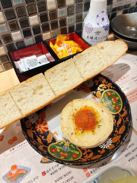 ポテサラに焼きキャベツ、明太カマンベールを注文。