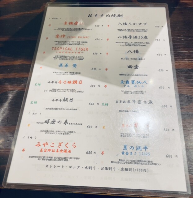 オススメ焼酎メニュー1
