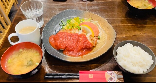 日替わりランチ 厚切り豚ロースソテートマトソース1,000円(コーヒーセルフサービス、お味噌汁おかわり無料)