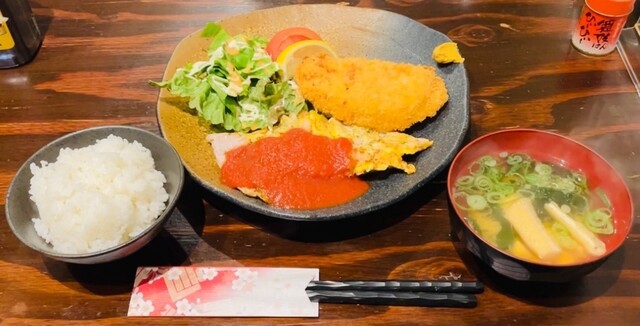 まずオムライスのプレートを見て一言!盛り付けが美しく何より美味しそう!串カツもかなりの大きさで期待がもてます!