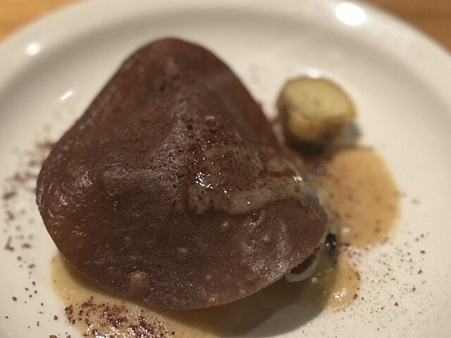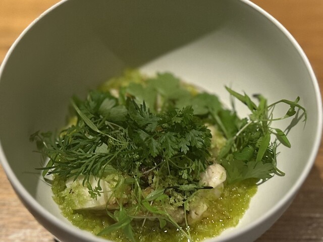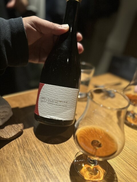 ドイツ産のオレンジワインがお洒落なボトルで登場し、白子をこんがり炙ったラットゥーメ。たっぷり載ったハーブの香りとサクッとしたパン粉の食感が愉しいです。どのスタッフさんもお酒やお料理に詳しく、丁寧に紹介してくれます。情熱が伝わってきて本当に良いお店です。神奈川県産のクラフトビールにはほんのり梅が漬け込んでありまろやかなコクがあります。カレッティエラはもっちりしたスパゲッティに檸檬とトマトのソースで刺激的な辛味があります。はじめて食べる味かも。本当に美味しい!次は梅酒の登場に驚きます。抜群に香り高くシェリー酒のような雰囲気です。牡蠣が生ハムに包まれ、百合根のような甘みのあるイタリア野菜が添えてあります。冬のご馳走をこれでもか!と詰め込んできます。