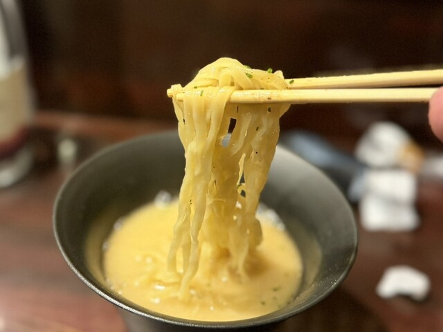 コースの串は手羽先・手羽元に追加しておまかせで3本。鶏の味わいが強く焼き加減がどれも絶品。スパークリングワイン(ロゼ)と白ワインを戴きましたが、お酒もまだまだ愉しそうです。〆には鶏白湯ラーメンが登場し、おなかいっぱいで幸せです。おみやげに鶏そぼろと鶏脂を持たせてくれました。これはヤバいお店を教えてもらっちゃいました。