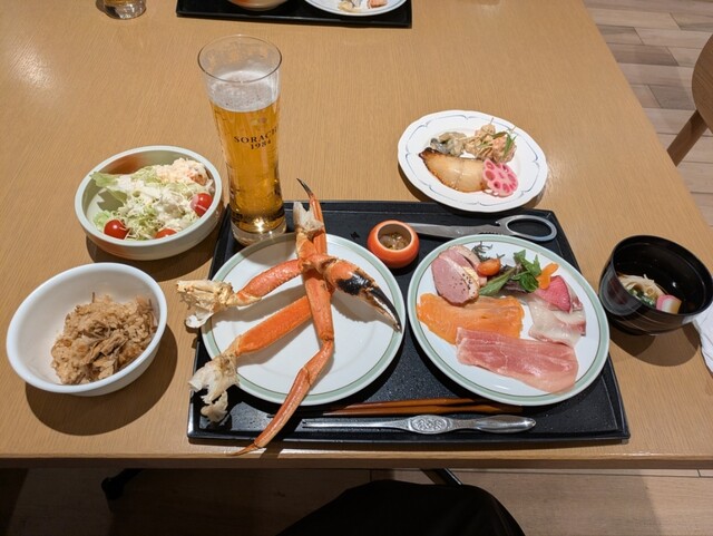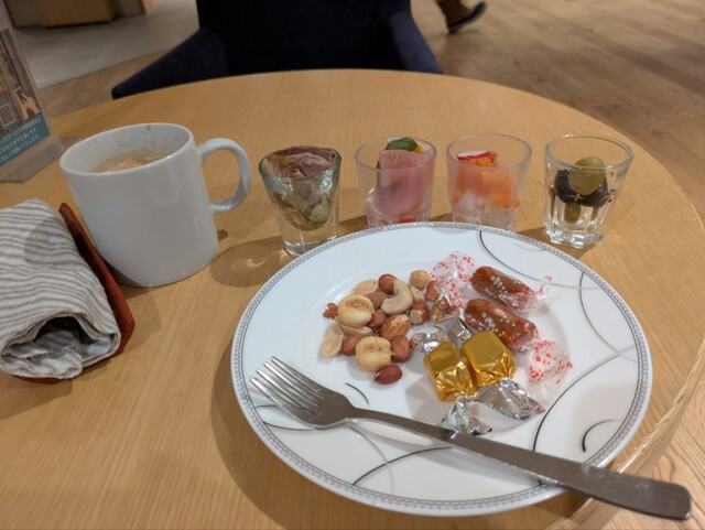ラウンジのフリードリンク、フリーフードの質が高く、満足度がかなり高いです。昼間からSORACHI飲み放題は大贅沢の気分。