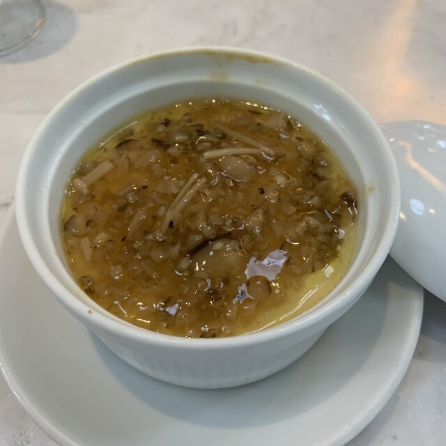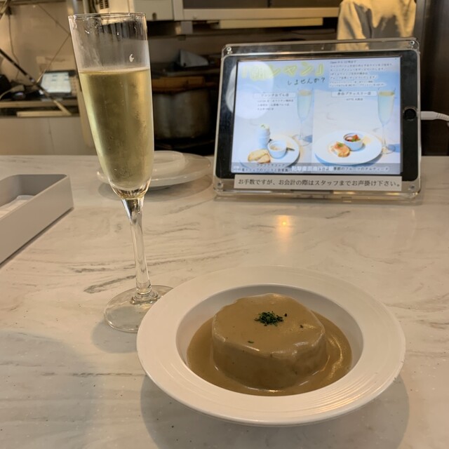ゆで卵にソースがかかった一品(酸味のきいたソースがゆで卵にかかっていました)と、もう一杯のワイン(甘めのシャンパン?)を撮り忘れました。