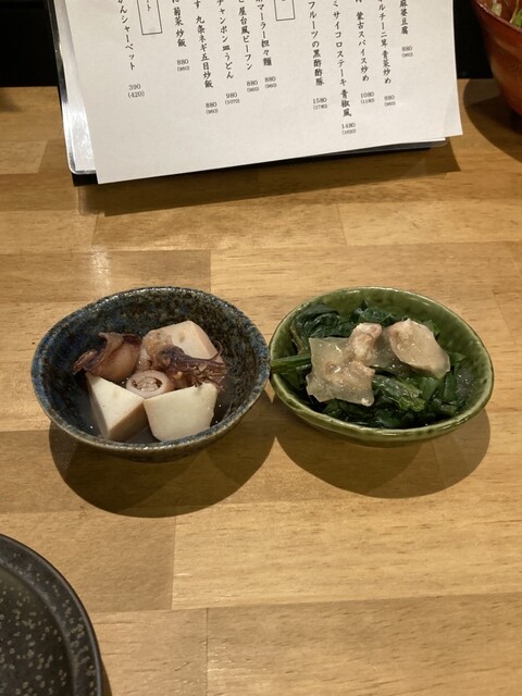 ホタルイカのキムチと、じゃこの入った青菜のおひたし
