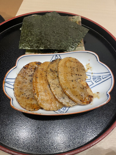 スライスした平貝を香ばしく焼いてあり、醤油と海苔で包んで熱いうちに頂く!