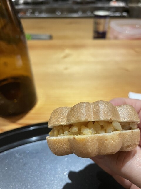 あん肝とご飯をまぜてモナカに挟んで頂きます。